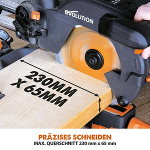 - Zuverlässigkeit steht bei Evolution Sägen im Vordergrund und gewährleistet jedes Mal sauberes, rechtwinkliges Schneiden in verschiedenen Materialien.
