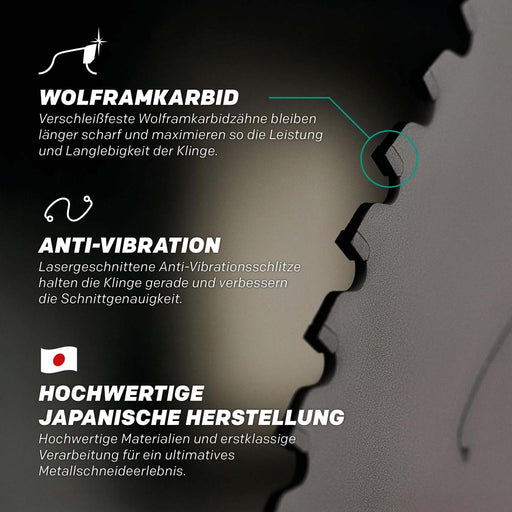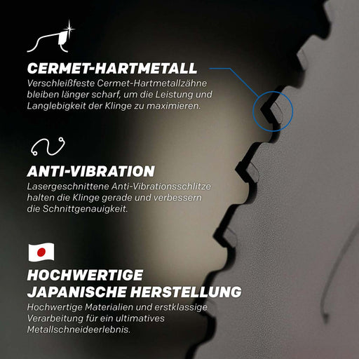 Hergestellt in Japan: die TCT-Sägeblätter von Evolution sind für das Schneiden verschiedener Baumaterialien konzipiert. Von Baustahl, Edelstahl, Aluminium, Hartholz bis hin zu Holz mit eingebetteten Nägeln.