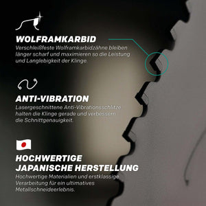 • Überlegene Schnittqualität: 100 Hartmetallzähne und Anti-Vibrations-Technologie sorgen für die saubersten und präzisesten Schnitte von Anfang bis Ende.