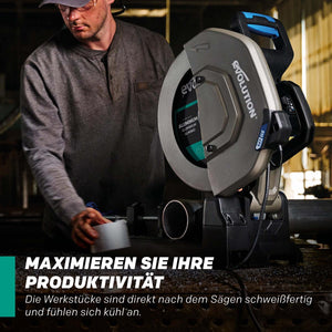 Perfekte Kombination: Optimiert für alle Metalltrennsägen, aber entwickelt für maximale Leistung in Kombination mit der Evolution S355MCS Gehrungssäge und der S355CPS Trennsäge – für beste Ergebnisse in der Aluminiumbearbeitung.