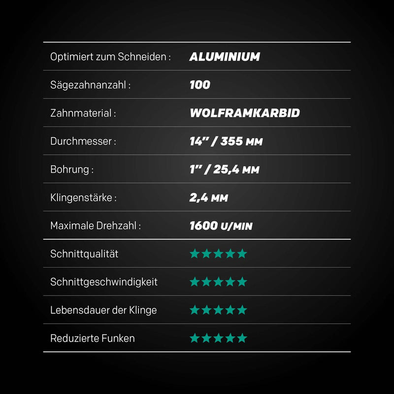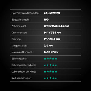 EVOMAX 355mm 100-Zahn Hartmetall-Sägeblatt für professionelle Schwerlast-Aluminiumbearbeitung