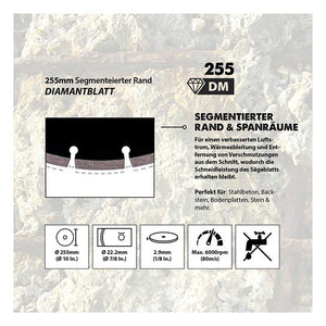 Evolution 255mm Trennscheibe mit diamantbeschichtetem Segmentrand