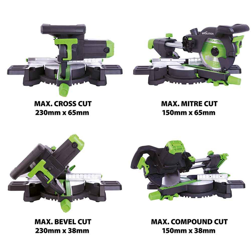Evolution F210SMS 210mm Schiebe-Kapp- und Gehrungssäge mit TCT-Multi-Material-Sägeblatt